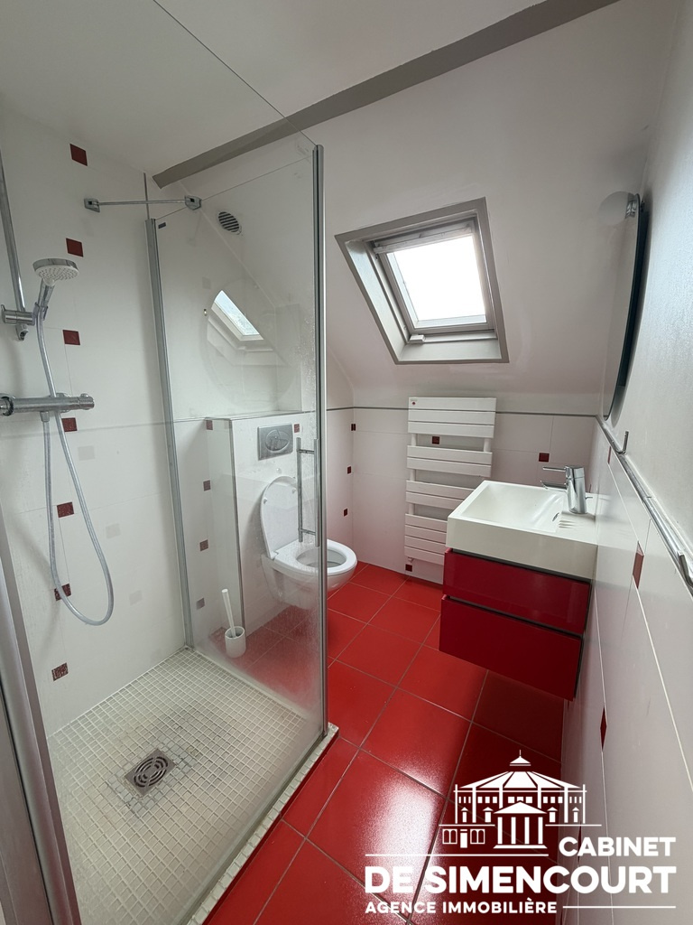 - Au troisième étage : une chambre, une salle d'eau, wc